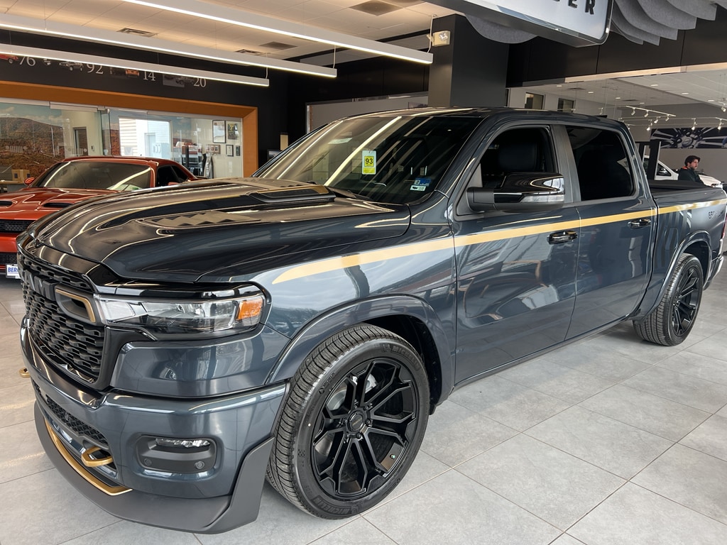 Quick Order Package 27Z Big Horn. Big Horn Level 2 Equipment Group: Google Android Auto; SiriusXM Radio Service; USB Host Flip; Power Adjustable Pedals; Leather Wrapped Steering Wheel; Integrated Voice Command with Bluetooth; 12 Touchscreen Display; Glove Box Lamp; Auto Power-Folding Mirrors; 115V Auxiliary Rear Power Outlet; Media Hub with 2 Charge Only USBs; Heated Front Seats; Security Alarm; Black Premium Power Mirrors; Apple CarPlay; Premium Overhead Console; 9 Amplified Speakers with Subwoofer; Disassociated Touchscreen Display; Body Color Fender Flares; Remote Tailgate Release; 115V Auxiliary Power Outlet; LED Dome Lamp with On/off Switch; Universal Garage Door Opener; 2nd Row in Floor Storage Bins; Sun Visors with Illuminated Vanity Mirrors; LED Footwell Lighting; Rear Window Defroster; Integrated Center Stack Radio; Rear View Auto Dim Mirror; Rear Power Sliding Window; Connectivity - US/Canada; GPS Navigation; 4G LTE Wi-Fi Hot Spot; GPS Antenna Input; Overhead LED Lamps; Exterior Mirrors with Heating Element; Auto Dim Exterior Driver Mirror; SiriusXM with 360L; Global Telematics Box Module; Connected Travel and Traffic Services; Heated Steering Wheel; Configurable Drive Mode; 400W Inverter; HD Radio; Deluxe Cloth Bucket Seats; Uconnect 5 Navigation with 12.0 Display Radio; Exterior Mirrors with Supplemental Signals; Steering Wheel Mounted Audio Controls; Exterior Mirrors Courtesy Lamps; Air Conditioning ATC with Dual Zone Control; Cluster 7.0 TFT Color Display; Convex Wide-Angle Exterior Mirror Insert. Night Edition: 275/55R20 OWL All Season Tires; Accent Color Premium Power Mirrors; Exterior Mirrors with Supplemental Signals; Black Headlamp Bezels; Exterior Mirrors Courtesy Lamps; Grille Black Surround Black Mesh; Auto Power-Folding Mirrors; Exterior Mirrors with Heating Element; 20 X 9.0 Aluminum Painted Clad Wheels; Auto Dim Exterior Driver Mirror; Black Exterior Truck Badging; Anti-Spin Differential Rear Axle; Accent Color Door Handles; Accent Color Tailgate Handle; Black Interior Accents; Dual Exhaust with Black Tips; Body Color Front Bumper; Convex Wide-Angle Exterior Mirror Insert; Body Color Rear Bumper with Step Pads; Black Tail Lamp Bezels; RAM Grille Badge - Black; Black Painted Exterior Mirrors Caps. Bed Utility Group: MOPAR Spray in Bedliner; MOPAR Deployable Bed Step; MOPAR 4 Adjustable Cargo Tie-Down Hooks; Pick-Up Box Lighting; Exterior 115V AC Outlet. Quick Order Package 23Z Big Horn. Dual-Pane Panoramic Sunroof. 9 Amplified Speakers with Subwoofer. Anti-Spin Differential Rear Axle. 33 Gallon Fuel Tank. Forged Blue Metallic. Rear Underseat Compartment Storage. Cluster 12 TFT Color Display. 3.92 Rear Axle Ratio. **Equipment listed is based on original vehicle build and subject to change. Please confirm the accuracy of the included equipment by calling the dealer prior to purchase.**