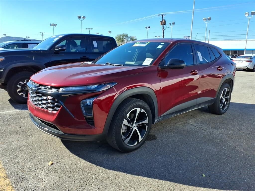 Discover exceptional value with this 2024 Chevrolet Trax 1RS, now available in Roanoke, VA. This stylish subcompact SUV pairs sporty design with efficient performance, powered by a 3-cylinder, 1.2L gasoline engine and front-wheel drive for nimble handling and impressive fuel economy. Perfect for city commutes and weekend escapes, the Chevrolet Trax 1RS offers modern features and confident driving dynamics in a compact footprint. This vehicle boasts a CARFAX 1-Owner history and a CARFAX Clean Report, giving you added peace of mind about its background and maintenance. Safety features include Lane Departure Warning to help keep you centered on the road and a Back-Up Camera for easier, safer parking maneuvers. Stay connected on the go with Hands-Free Bluetooth for seamless phone calls and audio streaming without distraction. Inside, the Chevrolet Trax 1RS delivers a comfortable, driver-focused cabin with thoughtful tech and convenience features designed for everyday life. With low mileage and a clean history, this pre-owned 2024 Chevrolet Trax represents one of the best-priced options in the Roanoke area â" an outstanding opportunity to get top value without compromising on quality or safety. Schedule a test drive today in Roanoke, VA, and experience why this Chevrolet Trax 1RS stands out as the best-priced, well-equipped compact SUV in the market.