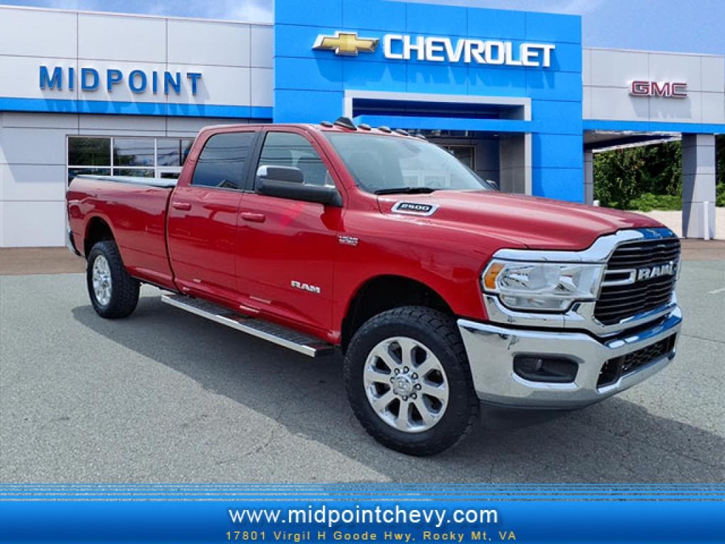 Experience capability and comfort with this 2021 Ram 2500 Big Horn 4WD, powered by a proven 6.4L V8 gasoline engine and available now in Rocky Mount, VA. This heavy-duty pickup blends rugged performance with thoughtful tech and convenience features, making it ideal for work, towing, or daily driving. The Big Horn trim provides a well-appointed interior and exterior upgrades, while 4-wheel drive ensures confidence in varied road and weather conditions. Inside, enjoy modern connectivity with Apple CarPlay, Hands-Free Bluetooth, Satellite Radio, and XM Radio for long drives and job site commutes. The cabin balances durability with comfort, offering intuitive controls and supportive seating for extended trips. A CARFAX 1-Owner history report adds peace of mind and indicates careful previous stewardship. This Ram 2500 stands out for its powerful V8 performance, towing capability, and the practical benefits of Big Horn trim-level amenities. With competitive pricing, this vehicle represents the best price for similar inventory in the area, providing excellent value for customers seeking capability without compromise. Located in Rocky Mount, VA, this Ram is ready for a test drive schedule your appointment to experience the V8 power, advanced connectivity, and rugged reliability that make the 2021 Ram 2500 Big Horn a smart choice for drivers who demand more.